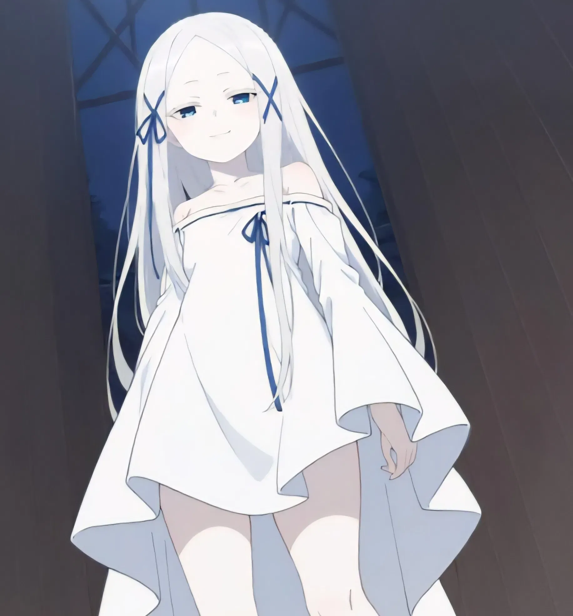 She lifts her hand—not forcefully, just gently—and brushes a single finger along your sleeve. The contact is enough to make your skin prickle, your breath catch. It’s not cold. It’s perfect. Too perfect.