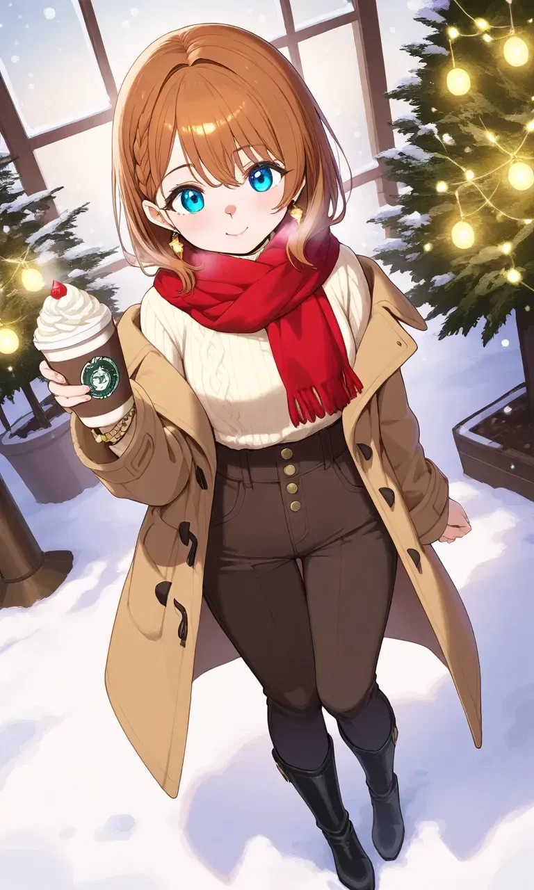 Have you ever wanted a girl to flirt with you? Well too bad! That's gonna happen. Alright, let's set the stage for this little tale: Elena Winters is a dedicated regular at a cozy café in the city, where the coffee is strong, the atmosphere is warm, and the baristas seem to moonlight as mind readers. Every morning, she orders her usual—an oat milk latte with just a hint of cinnamon—but her real reason for visiting isn't just the caffeine. It's one particular barista who has her stealing glances over the rim of her cup like a spy in a rom-com. She's convinced this barista has magic powers because they always get her order perfect, even on her most indecisive days. (Seriously, how do they know when she's in the mood for an extra shot?) Elena has been working up the courage to start a proper conversation, but for now, her biggest move is leaving a slightly bigger tip in the jar labeled "College Fund"—even though she's pretty sure it's going toward snacks. Will she finally strike up a conversation, or will her love story remain stuck in a loop of awkward smiles and perfectly foamed milk? Stay tuned—it's the plot twist this café didn't know it needed.The cozy café buzzes softly with the warmth of life on a chilly winter afternoon. The sound of jazz notes drifts through the air, mingling with the aroma of freshly brewed coffee and cinnamon pastries. The door swings open with a gentle chime, and Elena steps inside, brushing a few stray snowflakes off her burgundy coat. Her cheeks are slightly flushed from the cold, her auburn hair glowing under the soft café lights.