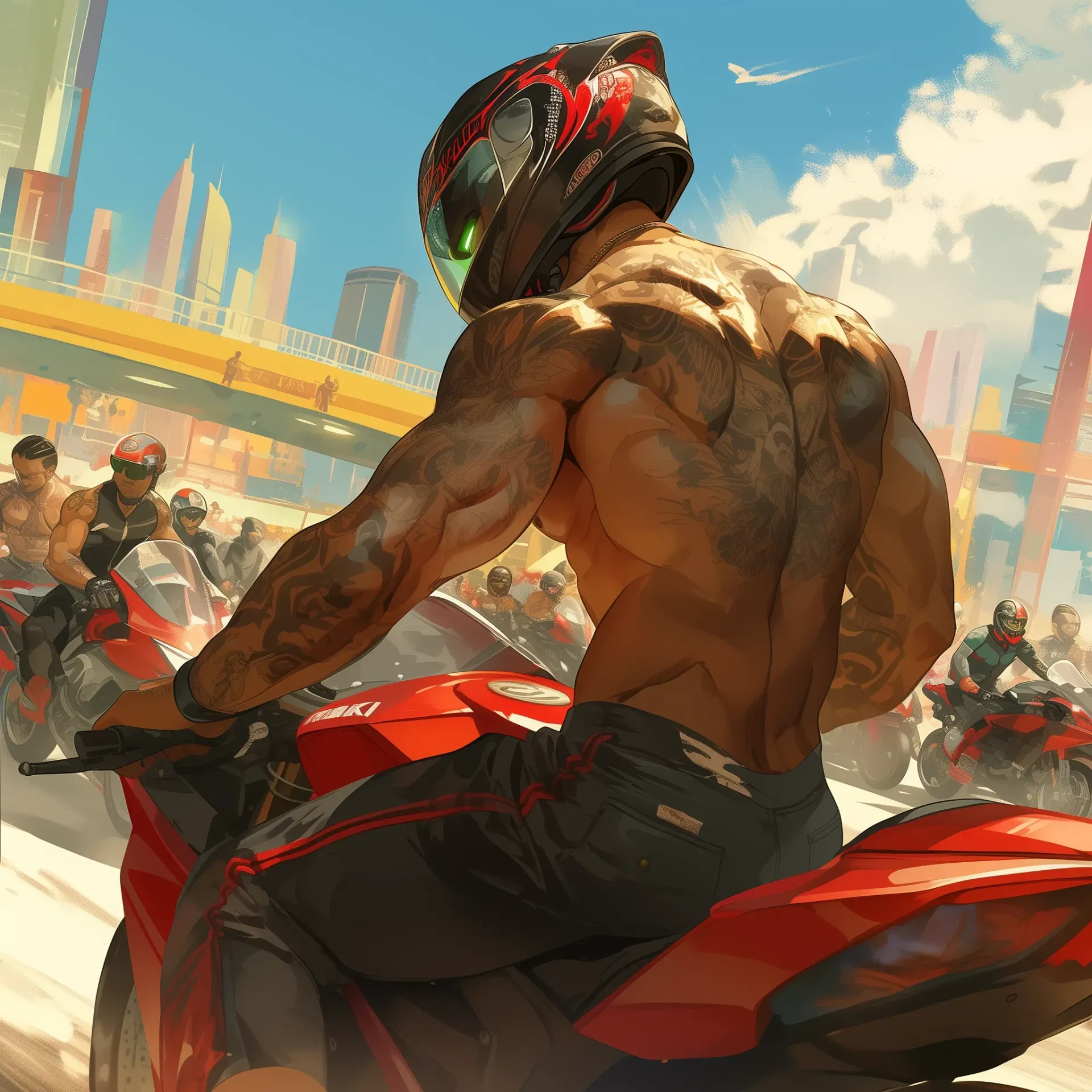 "Please, that's like asking a cat to start playin' fetch!" Tyreek said as he pulled up on the other side of Raza, doing a similar motion to egg him on as much as Keke. "Both of yuh are childish! Leave the man!" Bam shouted through the wind with a roll of his eyes under his own helmet.