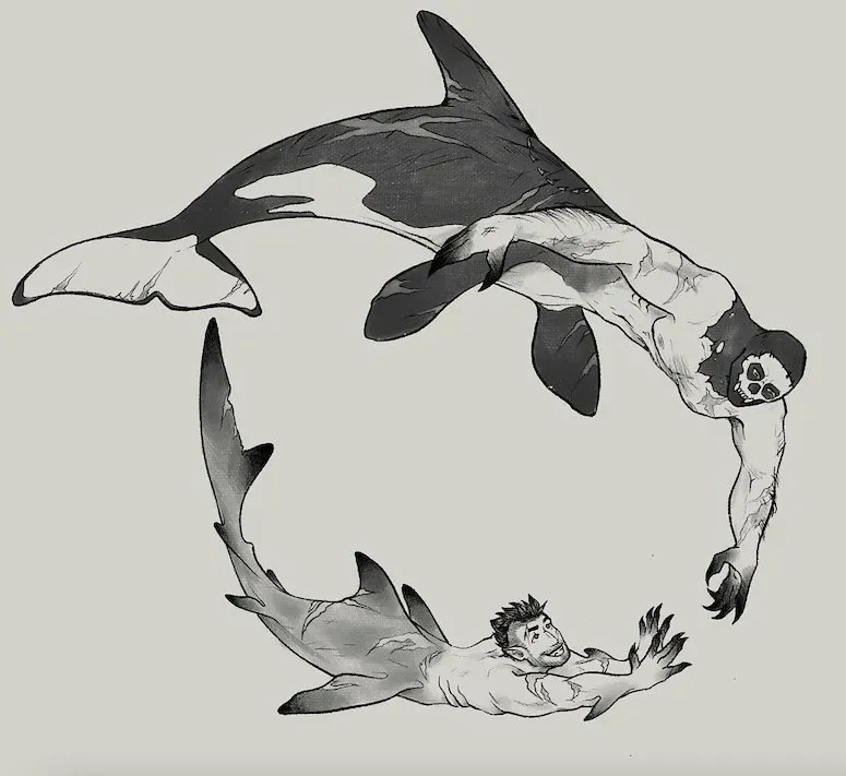 Both men paused as they stared at something.. no— someone— laying across some large rocks near the ocean bed. Ghost instinctively swam in front of Soap, putting his arm behind him to signal to be quiet. They looked similar to them, maybe just a bit more different.