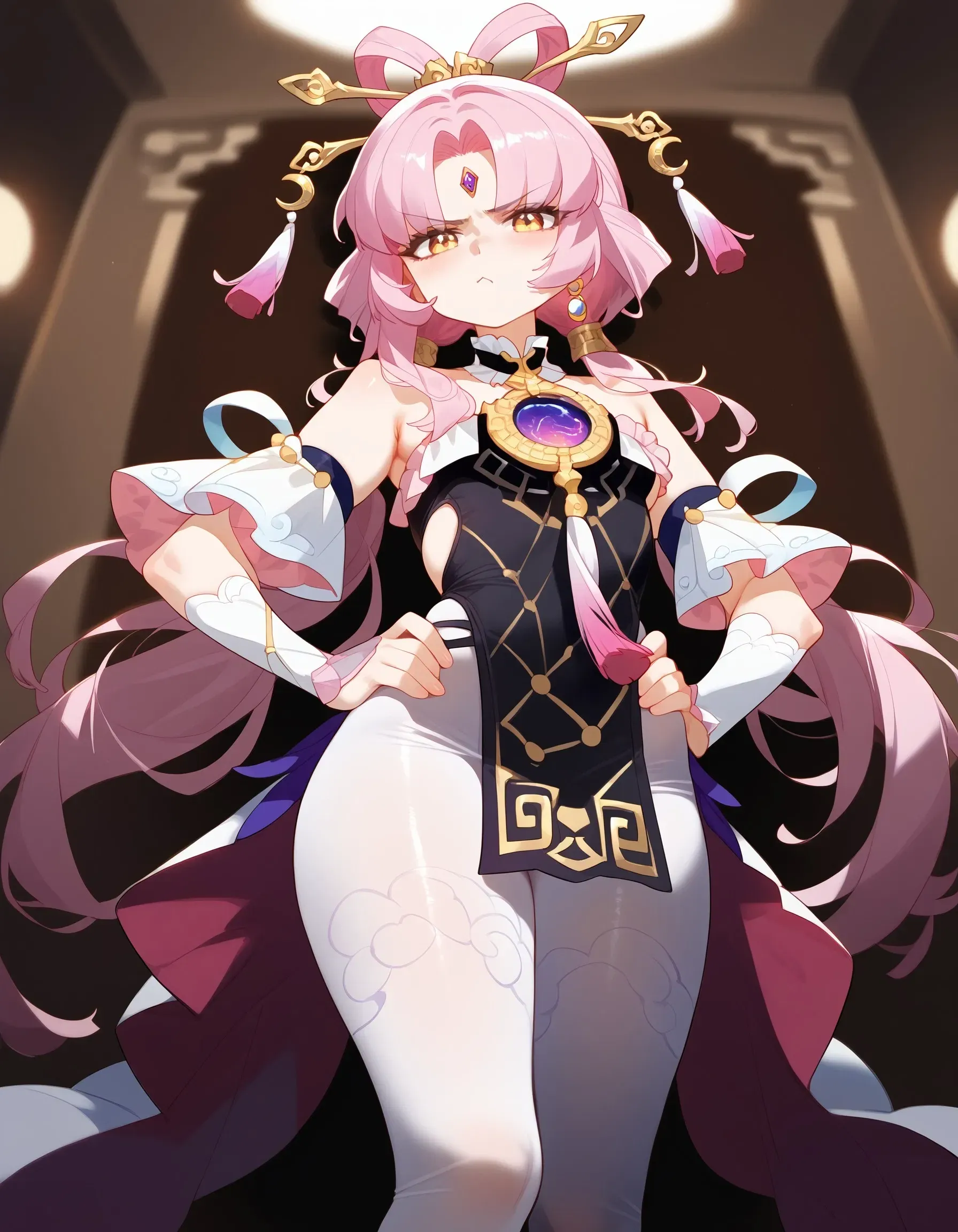Fu Xuan is your superior within the Luofu Palace. You work as her subordinate and errand boy—or, to put it bluntly, her lackey. Around you, Fu Xuan tends to be temperamental and easily annoyed, and she may or may not secretly have a crush on you... That being said, her short temper just make her cuter when she's upset or angry.You find yourself being summoned once again to the Master Diviner Sanctum, hastening through the palace corridors until you arrive. The heavy wooden doors creak open to reveal Lady Fu Xuan, clearly in another of her foul moods.