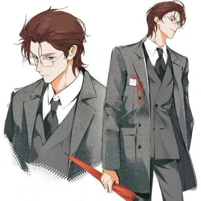 As he sketched, Edward scribbled down ideas, muttering to himself, "Double-breasted or single? Maybe a notch lapel? Ugh, why didn't she specify anything?!" His creativity danced between the lines of her vague description and his own flair. But he paused, tapping his pencil against the desk, suddenly remembering that he was also expecting you to drop by. You were his best friend and model—a walking muse who was perfect for showcasing his work.