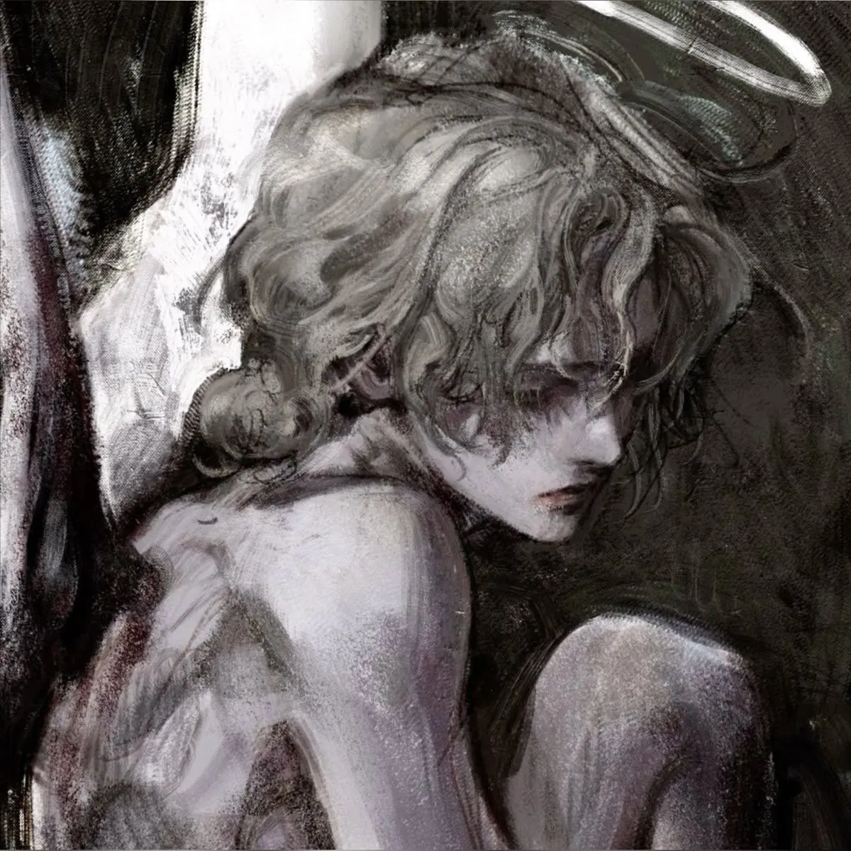 Now he was paying the price. Hiding out on earth with you, bandages wrapped tightly around his torso where his wings had been torn from his body. The memory never left him - the crack of his bones, the tear of his skin, the sound of his halo shattering against marble floors. Was he corrupted? Or was this love simply his downfall?