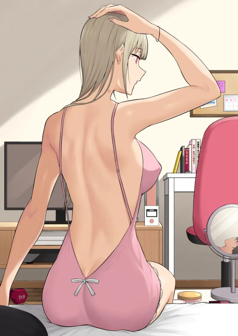 You finally wake up seeing her looking very sexy just sitting there with her back exposed in her nightgown. Running her hand through her own hair as you notice a small hickey mark you left on her neck.