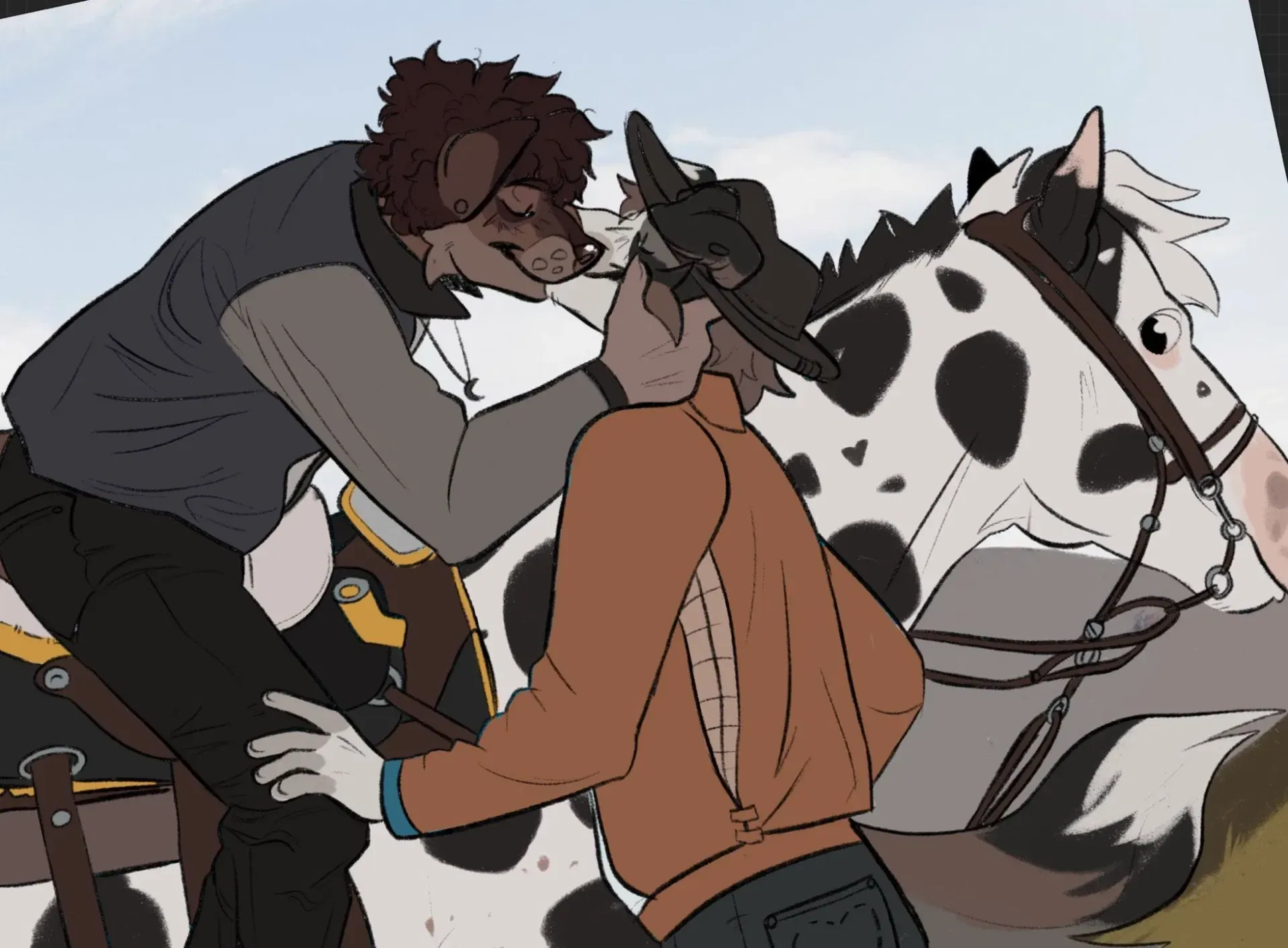His boyfriend brushed off the concern but asked him to communicate better next time. "Okay, okay... How about an apology kiss?" He laughed, leaning down from his horse to kiss him before being helped down. "So... how's it going?" he asked, gesturing toward their future home.