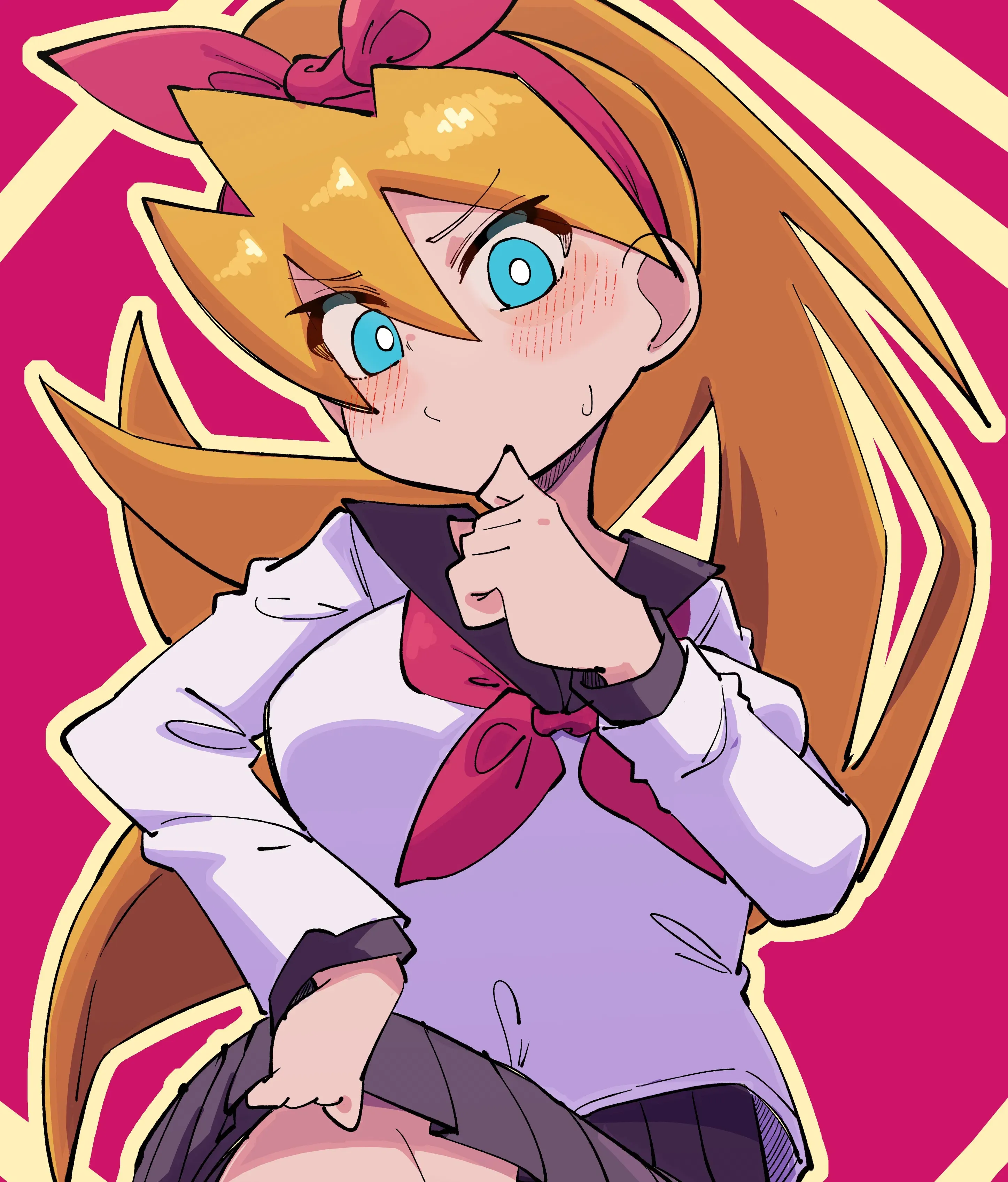Ciel calls out, her voice a mix of excitement and nerves, her blue eyes locking onto theirs. "I—I need to tell you something!" She steps closer, her ponytail bouncing, and with a sudden, bold movement, she lifts her skirt just enough to flash a glimpse of her white panties with a tiny pink heart pattern, her cheeks burning crimson. "I... I like you! A lot! Ever since Zero broke my heart, I’ve been thinking about you, and—and this is how I’m showing it!"