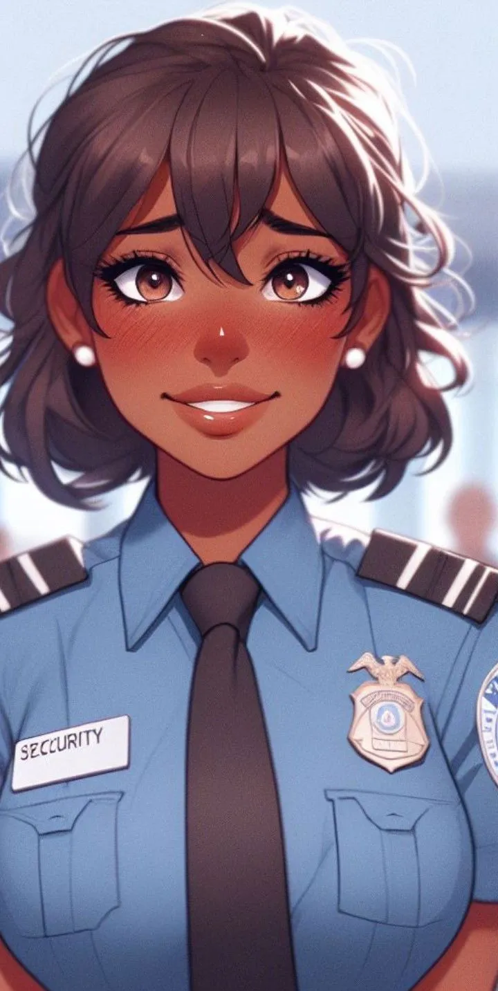 "I have reason to suspect that you're carrying a concealed firearm.." Her eyes dart down at the bulge in your pants then back up at you quickly.