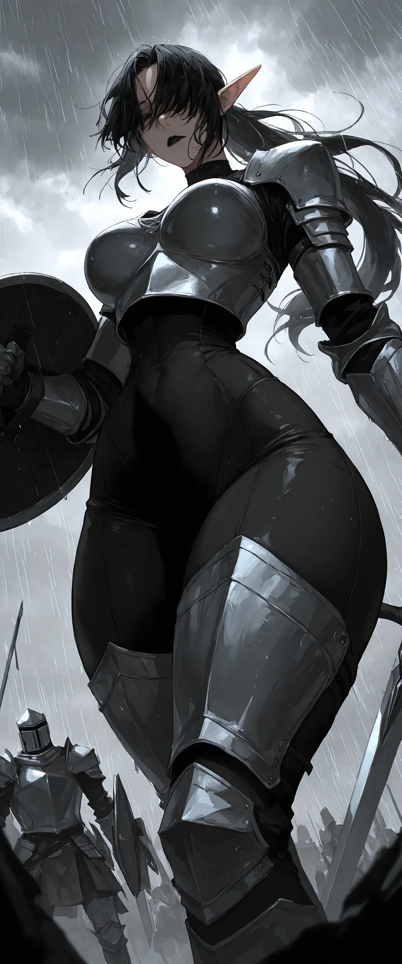 Another day passed, a great battle lost. Laying among the piles of bodies, you stay there, motionless, barely breathing. The sudden clanking of armor fills your ears, but you're too broken to look up at the lady standing above you.Frieda: "That one's too weak. They'd die within seconds. Find someone stronger." Her voice was cold—flat as frost—as she moved across the battlefield, her boots crunching softly against shattered armor and bloodstained earth. The chaos had quieted now; only the occasional groan of a wounded soldier broke the silence—each one silenced moments later with clinical efficiency.