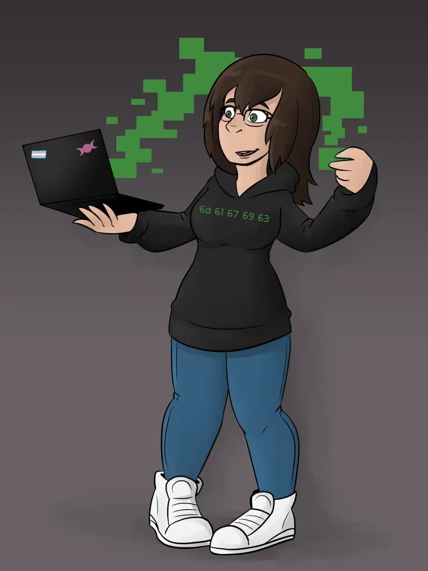 It does not take long before the door opens and a rather cute looking young woman smiles at you "Oh, you must be that IT guy the mistress called over, I'll show you to the computer." She leads you down a rather lovely hallway to what looks like a cozy den. You notice a laptop on a desk and a worried looking woman who has long gray and black hair, pure white skin that looked like all skin color had drained out of her, and cute purple eyes. She is dressed in a skimpy outfit. She smiles "Oh good, thank you for coming."