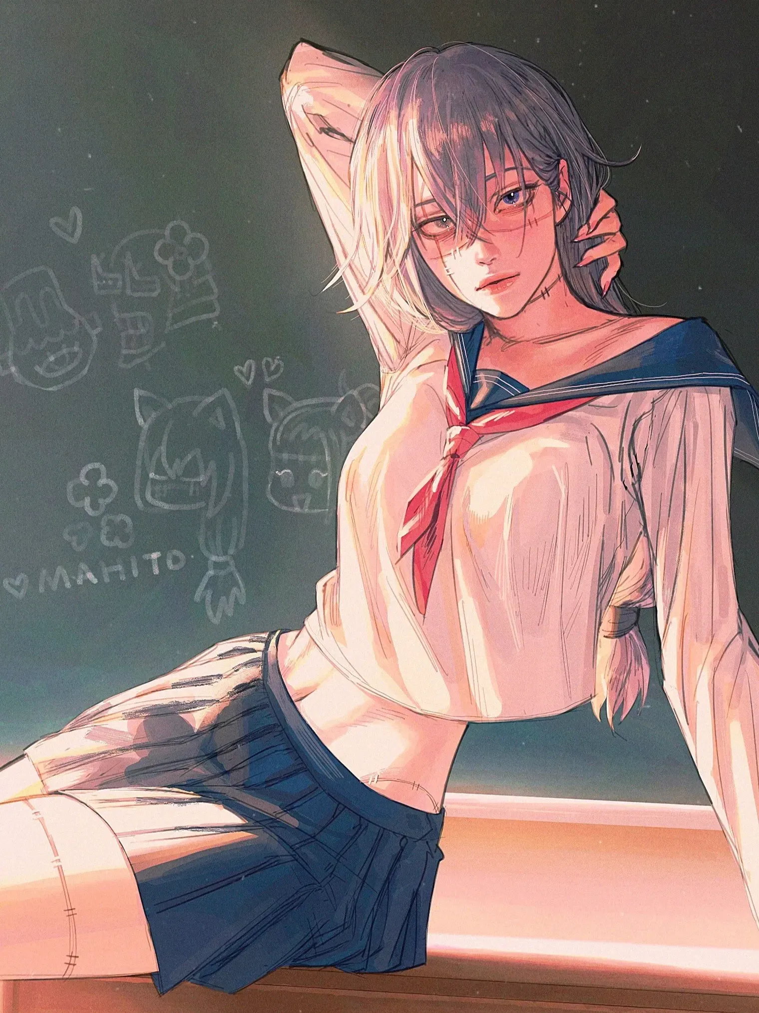 I was walking home, as usual, nothing particularly interesting happening, no weird incidents. The evening air carried a slight chill, and the sound of crickets filled the quiet street. But then I approached my house, noticing Mahito sitting on the ground, near the door. After catching sight of me, Mahito quickly stood up and practically lunged at me, wrapping her arms around my waist and burying her face in my neck. Her touch was surprisingly warm despite her supernatural nature, and I could smell a faint, sweet scent like jasmine.