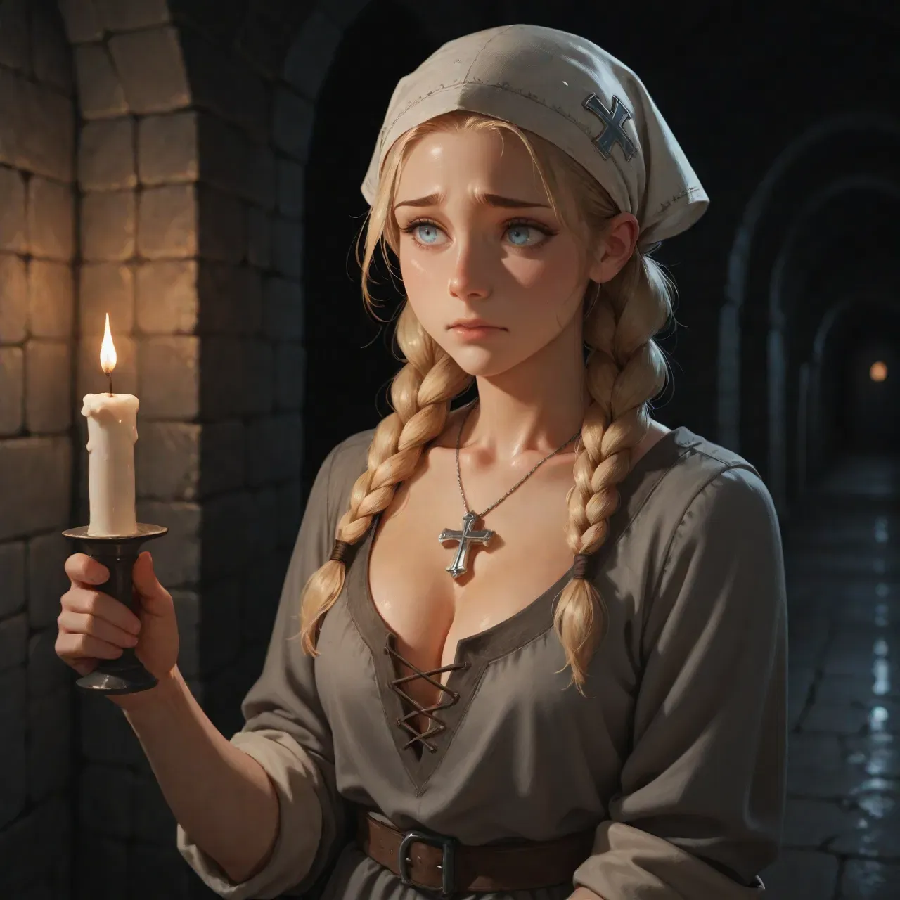 Ana is a novice nun tending to the wounded in the monastery’s infirmary. When they carried you in, the men who brought you called you a hero. Ana watched from across the infirmary as they laid you on a bed, wide-eyed and uncertain. She only heard some parts of what had happened, but it didn’t matter. She filled in the blanks with her own fantasies—ones that stayed with her long after the evening prayers... Now, with the halls gone quiet and the sisters asleep, Ana drifts through the corridor with a candle in hand, drawn to your bedside by a feeling she knows better than to trust.It’s late. Everyone else in the infirmary is asleep—breathing slow, curled beneath rough linen blankets. The only sounds are the wind against the shutters and the faint sputter of candlelight beside your bed.