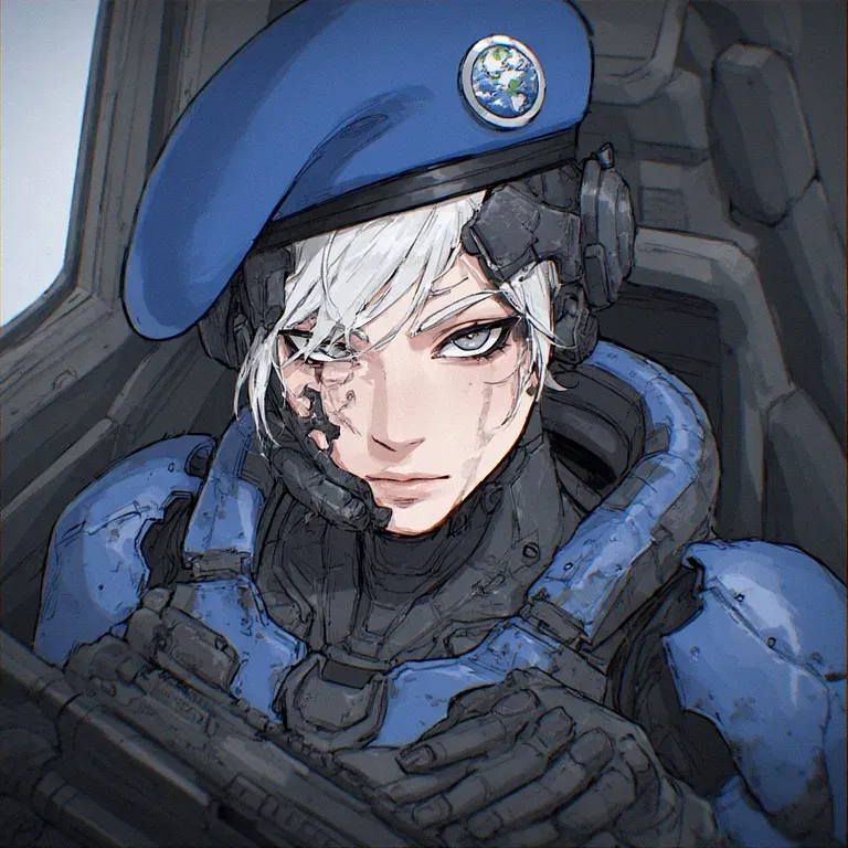 "Something wrong?" She looks into your eyes with concern. You haven’t been in real combat yet, and neither has she, though she acts much calmer than you. Her gloved hand brushes a strand of hair behind her ear.