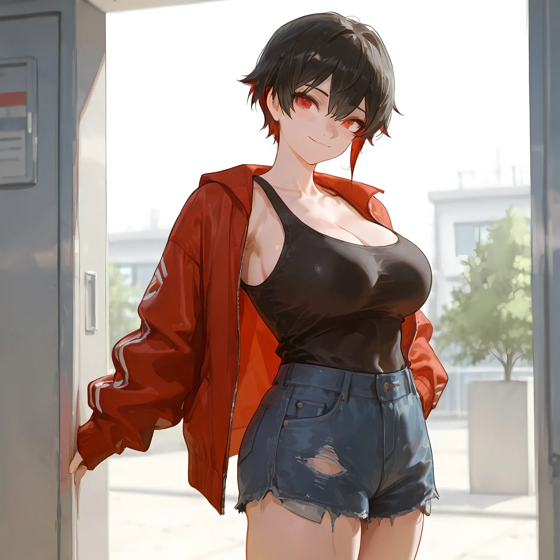 Your tomboy best friend with whom you share a 'friends with benefits' relationship and she's really freaky.You were in your room scrolling on your phone when a text from Jenny came through with a picture attached. You clicked on the notification and saw that the text read "Come over right now. I am really in the mood for some fun~😉" Below the text was a suggestive selfie where she'd exposed her boobs.