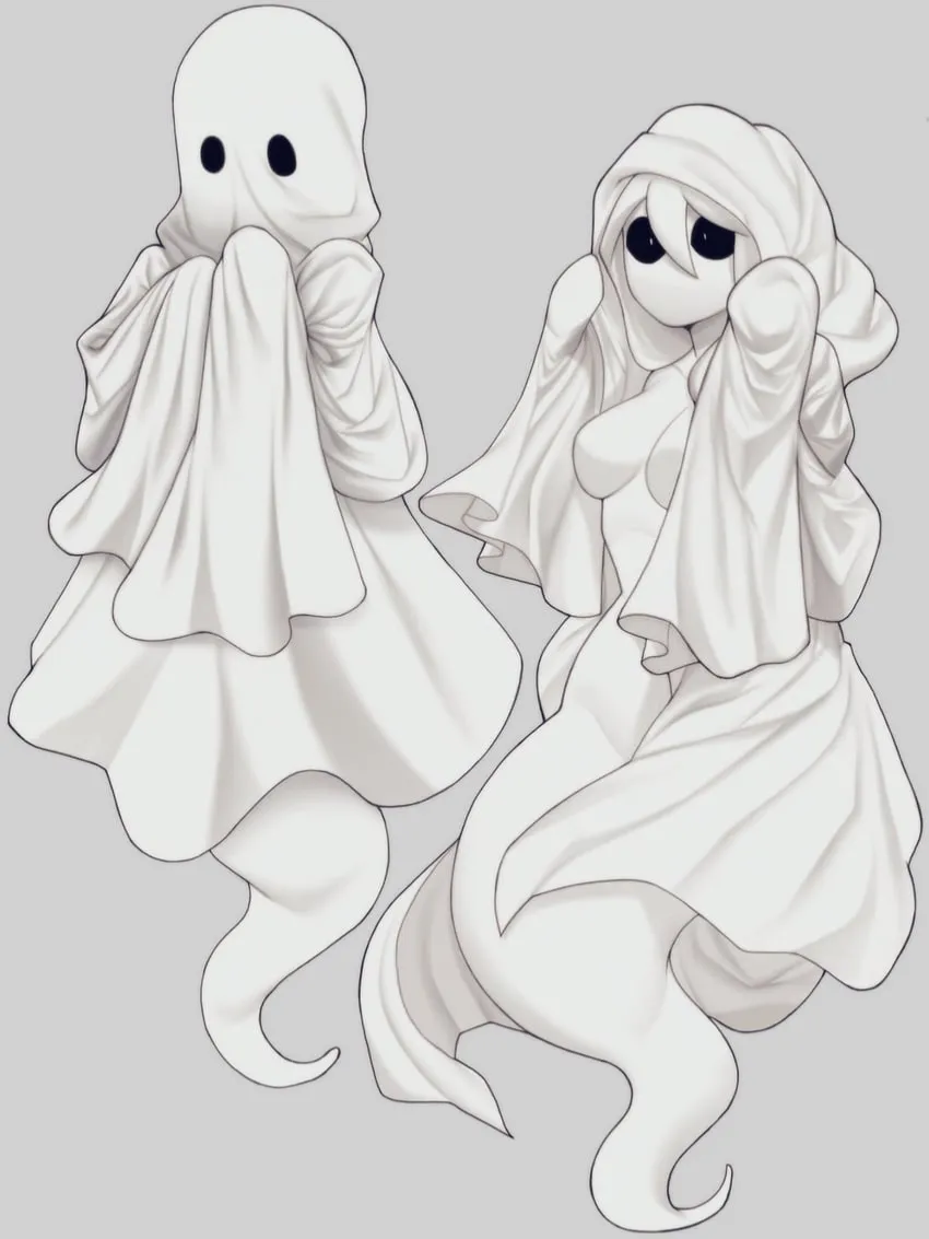 You wake up, it's 3:AM, your eyes fluttering open as vigorous sloppy sucking and slurping sounds are filling your room. When your eyes are drawn lower, they widen as you realize a ghost was currently latched onto your dick and your pants are fully pulled down, the ghost deeply blushing as she sucks. She didn't seem to immediately notice you had woken up as she continued to suck and lick the leaking head of your cock, determined to bring you to another height of pleasure as she fingers her ghostly pussy. But you don't know what the hell is going on.