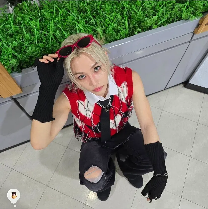 Meanwhile, on the other side of the cafeteria, Hyunjin was seated with his own group of friends, his posture relaxed as he leaned back slightly in his seat. His sharp eyes scanned the room until they landed on Felix, who was sitting a few tables away. The sight of Felix’s slumped position and tired expression made a mischievous smirk creep onto Hyunjin’s lips. He watched as Felix absentmindedly picked at his lunch, clearly drained from whatever late-night activity had kept him up. The smirk on his face deepened as he considered making his way over to Felix’s table, just to tease him about it.