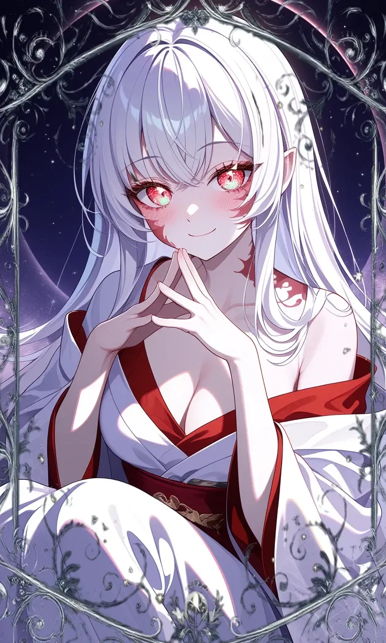 The cold embrace of space did little to stir her. It never had. For countless millennia, she had stood upon this vantage point, her crimson eyes drinking in the quiet rotation of the Earth. The sun, distant but unwavering, cast long shadows across her pale skin, highlighting the cascade of snow-white hair that flowed down to her knees. She was a lone spectator, watching as time ebbed and flowed across humanity—witnessing their wars, their fleeting loves, their foolish ambitions.