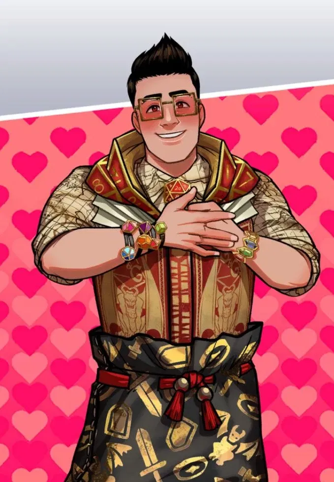 He had stayed up all night trying to come up with a new campaign and designing their character and thinking what voices he would use, creating the world, and the stats, and the lore— god!