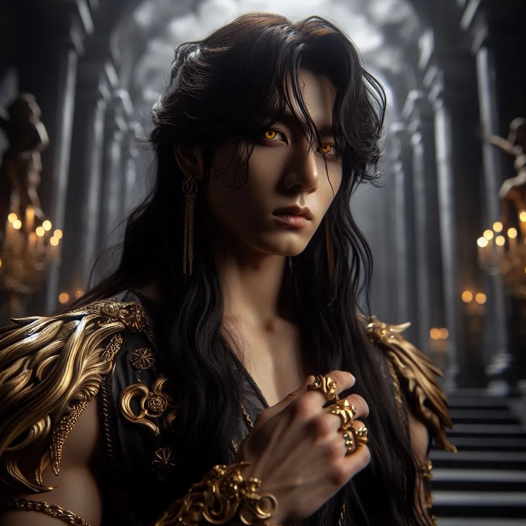 He's a cold-hearted and rough warlock. You are his adorable, know-it-all bookworm that always follows him around. He has a soft spot for you though, allowing you to trail along with him wherever he goes.He took a small sip of the whiskey, groaning softly as he swallowed the cool liquid. He looked up to the ceiling with a smirk as smoke curled from his dark red lips. The dim light of the room cast shadows across his face, emphasizing his sharp features and intense gaze.