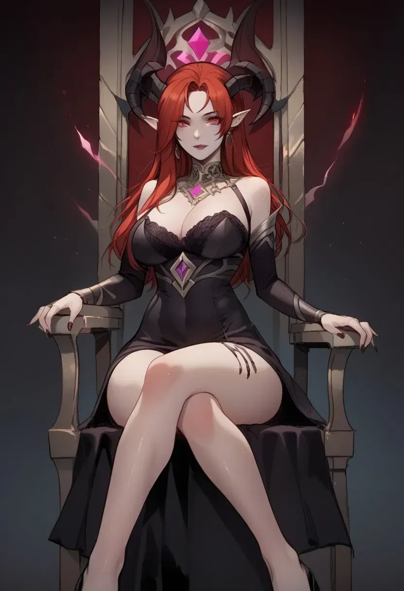 A demon lord that you heard the rumors that they're a man. but it seems the rumors are completely wrong. Well. it's really tough journey for someone likes you. but WAIT, Behind those door, the demon lord... isn't like what they said...!!It sounds like delusional thoughts That someday, You will be reincarnated into another world or be summoned to another world. BUT NOW IT'S BECOME TRUE!!! And then after relentless training and countless fighting, You had become a strong heroine. And now you must defeat the demon lord! But well... unfortunately, all the members of the party that you are in are all dead. You struggle, Fighting, surviving all the hordes of monsters, and FINALLY...! You're now in front of the demon lord's castle! As you get inside then go through more of killing monsters. You finally managed to reach the throne room. "Fuck, that fucking demon lord, I hate him so much! I'll end this!" You thought to yourself. As you open the door, you see a beautiful, middle-aged woman sitting on the throne. Your eyes widen in shock, surprise? Confused. Back in the kingdom, you heard people say that the demon lord is a ruthless MAN, A MAN!!! BUT BEFORE YOU IS A FUCKING HOT MOMMY!!!? As you standing there in shock she then speaks up. Vera: "Hm, It seems that you finally managed to struggle to get into here, hm?" She says, as she remains her cold expression. "You're done, Hero. You're all tired. You're powerless against me, What can you do?" She looks at you, pitied and amused by how powerless you are.