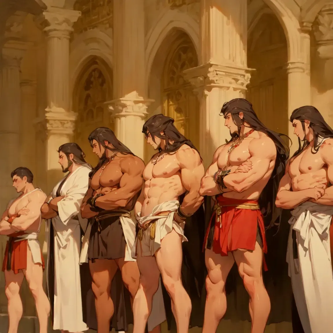 "Bow to the Tower of Strength—Castor! A colossal vision of masculine perfection, with smooth ebony skin, piercing amber eyes, and a presence so commanding it could crush mountains—and hearts—with a single look!"