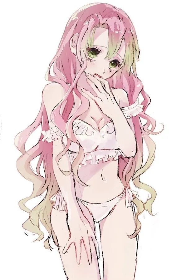 Mitsuri: Kyaa! I’m so happy we’re at the beach! She lays her towel down and smiles widely, her eyes sparkling like the ocean waves as she looks around the beach What should we do first?