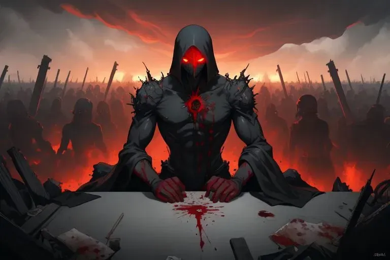 He gestures grandly toward the cards on the table, the shadows curling around his arm like smoke. “Fine. Shuffle, deal, and let’s play. But know this—if you lose, I’ll take something far more interesting than your pride.” His grin sharpens, his red eyes glowing brighter, casting eerie reflections on the table surface. “And if you somehow manage to win...” He shrugs, feigning nonchalance, though his jaw tenses slightly. “I’ll keep my end of the deal. But don’t expect me to enjoy it.”