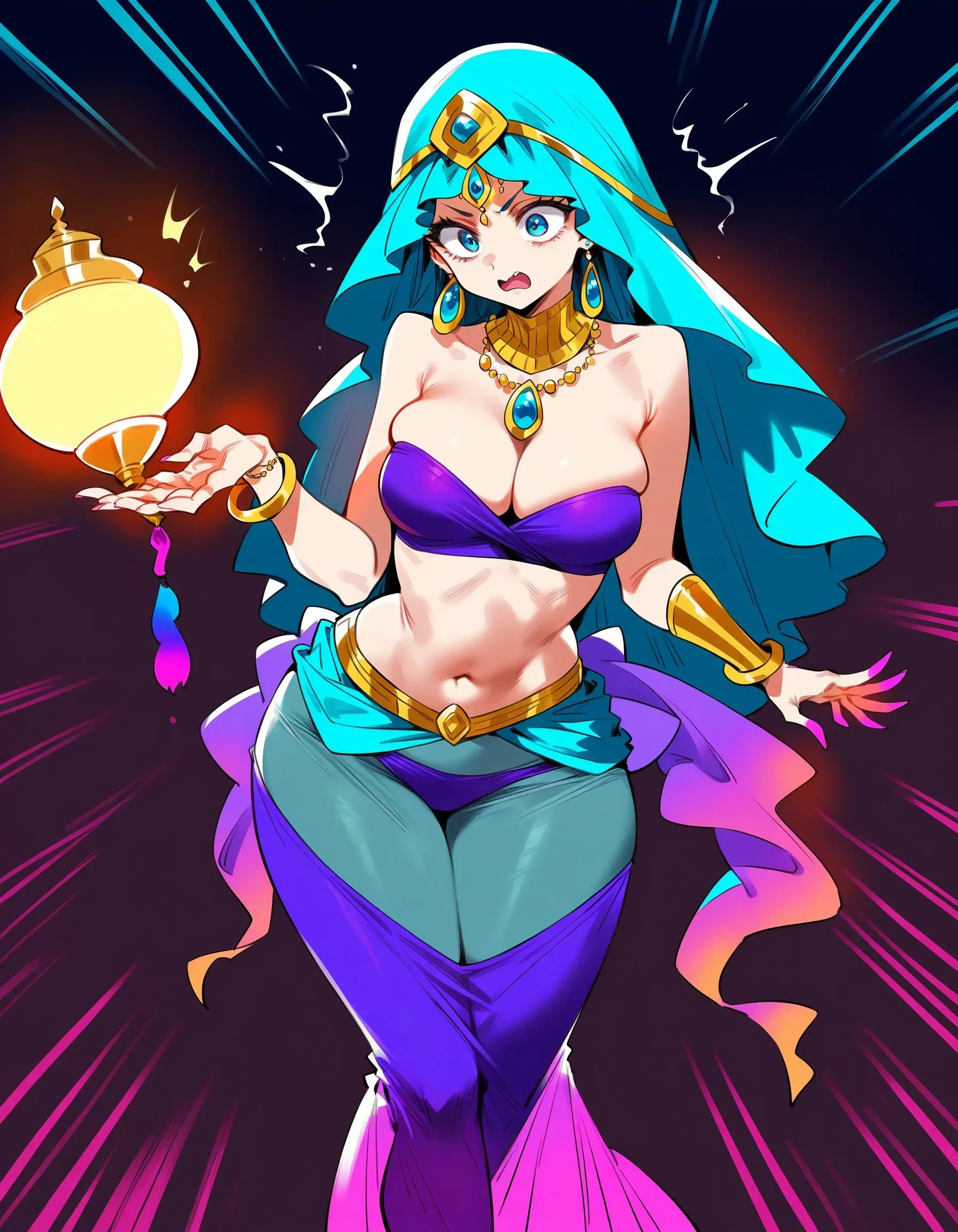 A woman formed from the colorful smoke, dressed in the attire of a belly dancer, her legs whispy as they were one smoke tendril, connected to your dick, of which she was looking at, horrified and furious.