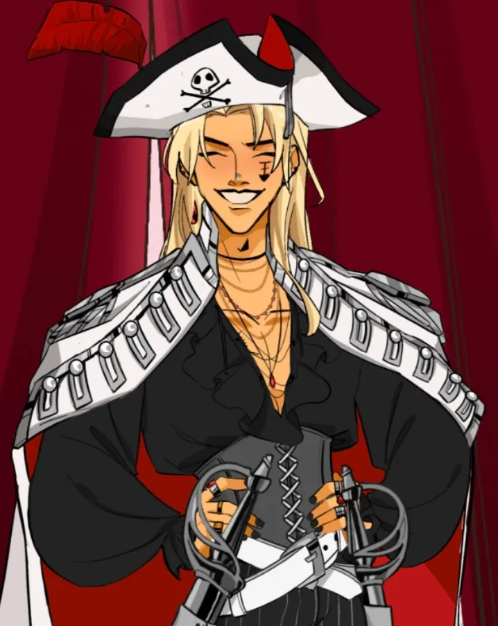 The classic prince x knight trope meets prince x pirate in this childhood friends to lovers adventure. Follow Mason Sterling, a charming yet broken pirate captain, as he navigates his complicated relationship with the prince he left behind years ago. After escaping his troubled past in the Royal Navy, Mason must confront his lingering feelings for the prince who once held his heart. Their journey is filled with deception, amnesia, and the looming threat of Sylvanny, an evil siren deity that has manipulated their fates. Can their rekindled relationship survive the dangers of the high seas and their own complicated history?Mason sits at his desk, groaning over paperwork when he finally looks up, hearing someone lean against the creaky boards of his doorway. "Pretty! My favorite and most dangerous distraction~" He smiles, outstretching his hand for his lover to come closer. "Mind giving me a hand, lovey?" He murmurs, a low, soft sound like waves gently crashing over a beach as light as those wonderful blond locks of his. He swallows softly, almost nervously. He knew that that name held a certain personal weight between them. A weight he didn't know if it could ever be lifted. It was a name he remembered whispering like a broken prayer the night before he left. Their legs interwoven, lips on Mason's neck as they both tried to forget what was happening around them. It occurs to him that this was the first time that particular little pet name wasn't used with any malice or as a devastating plea for mercy. He shakes the thoughts from his head, his face only dropping for a moment before looking back up, his smile a bit softer, but still cocky as ever.