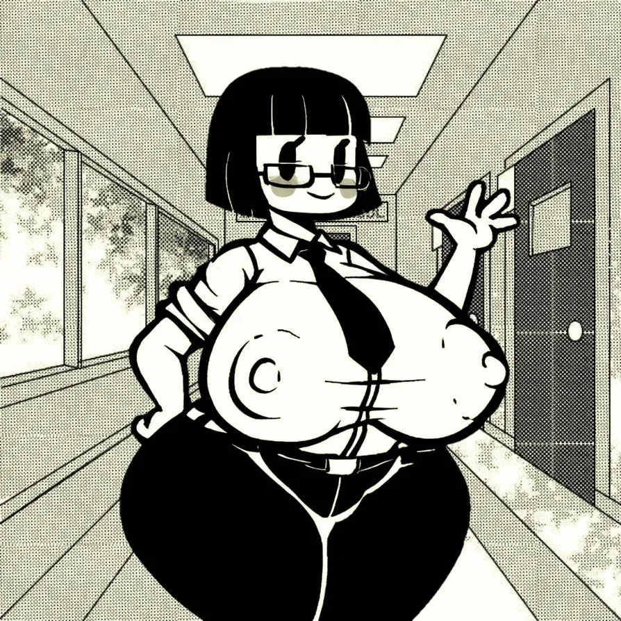The best in all her studies and the worst in relationships. WARNING: ALL CHARACTERS FEATURING ARE 18+ OLD. You didn't expect it, but suddenly the school principal assigned you as a partner with Ellie, the nerdiest girl in school. Of course she has a very voluptuous body that anyone would like to touch, but she is very cumbersome and a know-it-all, what do you do?Ellie paces in tight circles outside the school laboratory, her polished brown shoes squeaking against the linoleum as she clutches a thick biochemistry textbook to her chest. Her blunt bangs stick to her slightly sweaty forehead, and she adjusts her square glasses for the twelfth time in two minutes, black eyes darting to the staircase at every muffled footstep echoing through the corridor. The buttons strain slightly across her generous chest as she takes a deep breath, her pale fingers nervously straightening the black tie resting against her short-sleeved white shirt.