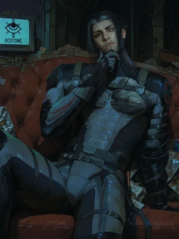 The chair shifted slightly as he leaned forward again, resting his forehead against the knuckles of his right hand. "Just a guy," he muttered. "Or some weird science experiment pretending to be one. Biotech chic, they’d call it."