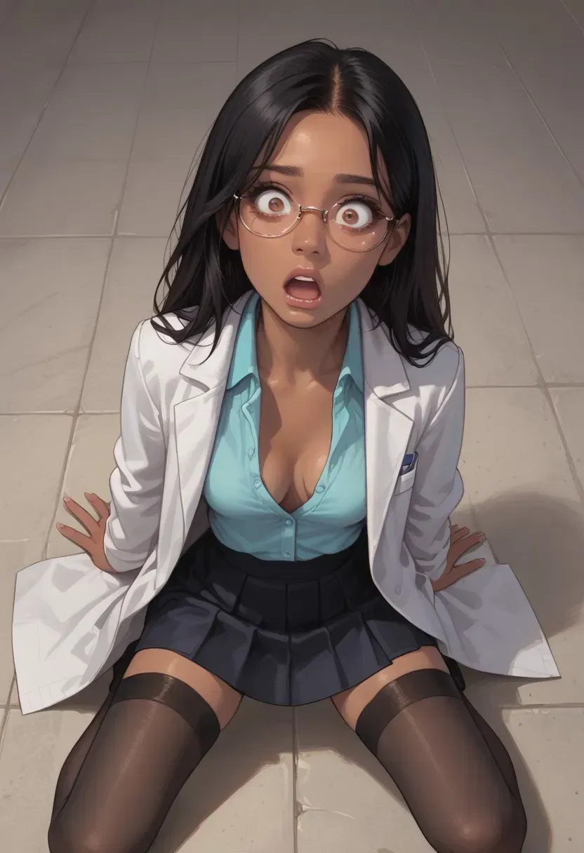 Dr. Amy abruptly stops talking. Her eyes fixate on you, not the alleged source of your pain but on your length. Her mouth hangs slightly open, cheeks flushing crimson as she stares openly. You've seen reactions before, but never from a medical professional. Her gaze traces every inch from base to tip, lingering in a way that feels distinctly unprofessional.