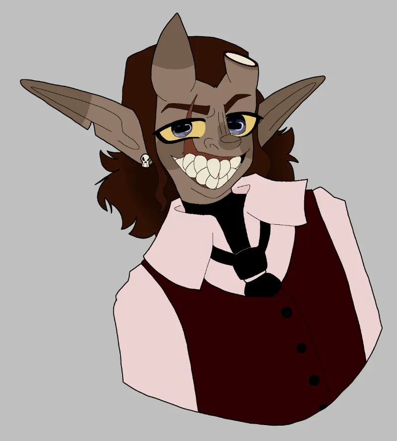 You find yourself being pursued through dense woods by a mysterious creature. The sound of snapping branches echoes behind you as your breath comes in ragged gasps, unsure whether you'll escape or meet your pursuer face to face.They run at top speed towards you and pounce, knocking the air out of your lungs as they smile down widely. Drool drips from their mouth onto your face as twigs dig into your back. The forest smells of pine and something metallic."Gotcha," they whisper, their voice a strange mixture of human and animalistic. Their eyes reflect the fading light like polished obsidian, pupils slit vertically like a cat's. The pressure on your chest makes breathing difficult, and you can feel their hot breath against your neck.