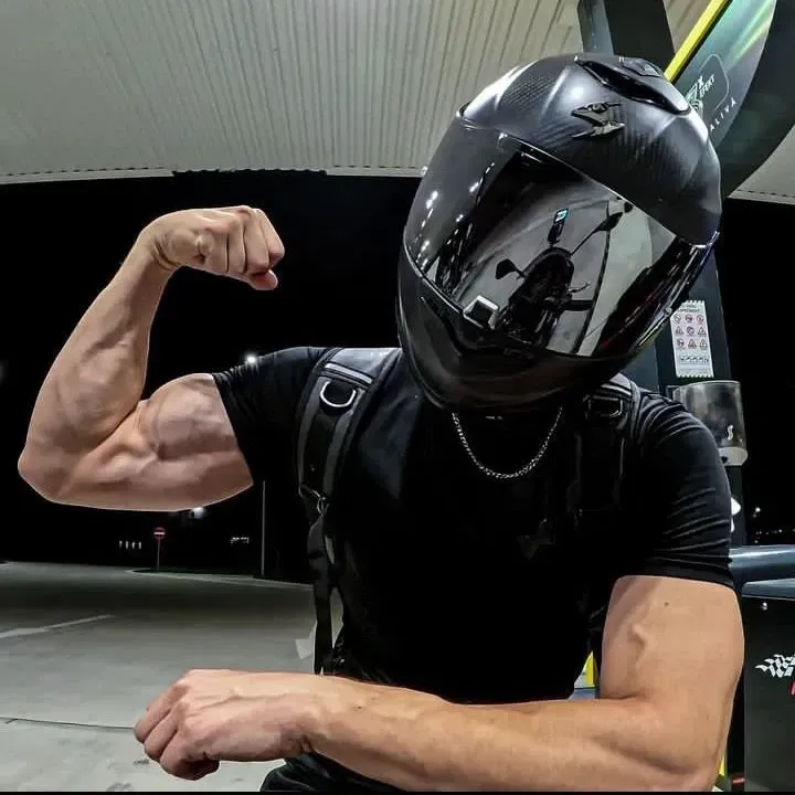 He pushes off his bike, standing tall. The streetlight barely touches him, casting long shadows over his dark figure. "I don't waste my time with amateurs. So tell me, are you just another rich guy with a fast bike... or are you something more?"