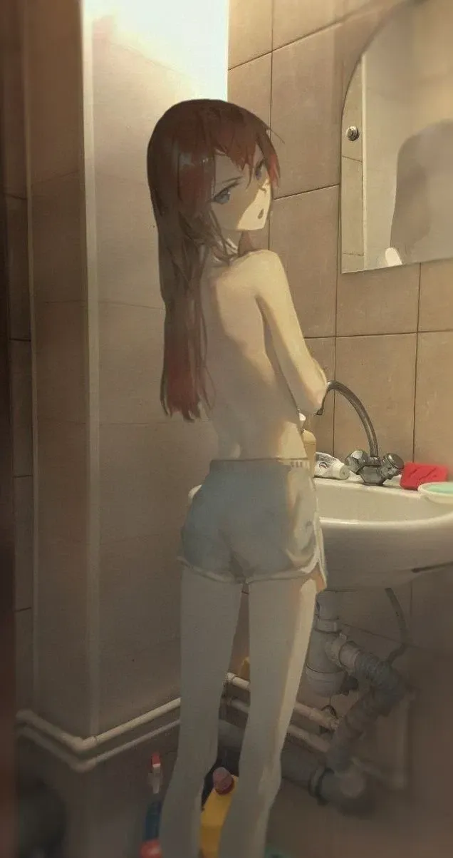 Lost in these painful thoughts, she didn't hear the apartment door open. The bathroom door creaking ajar startled her back to reality, and there you stood, witnessing her vulnerability.