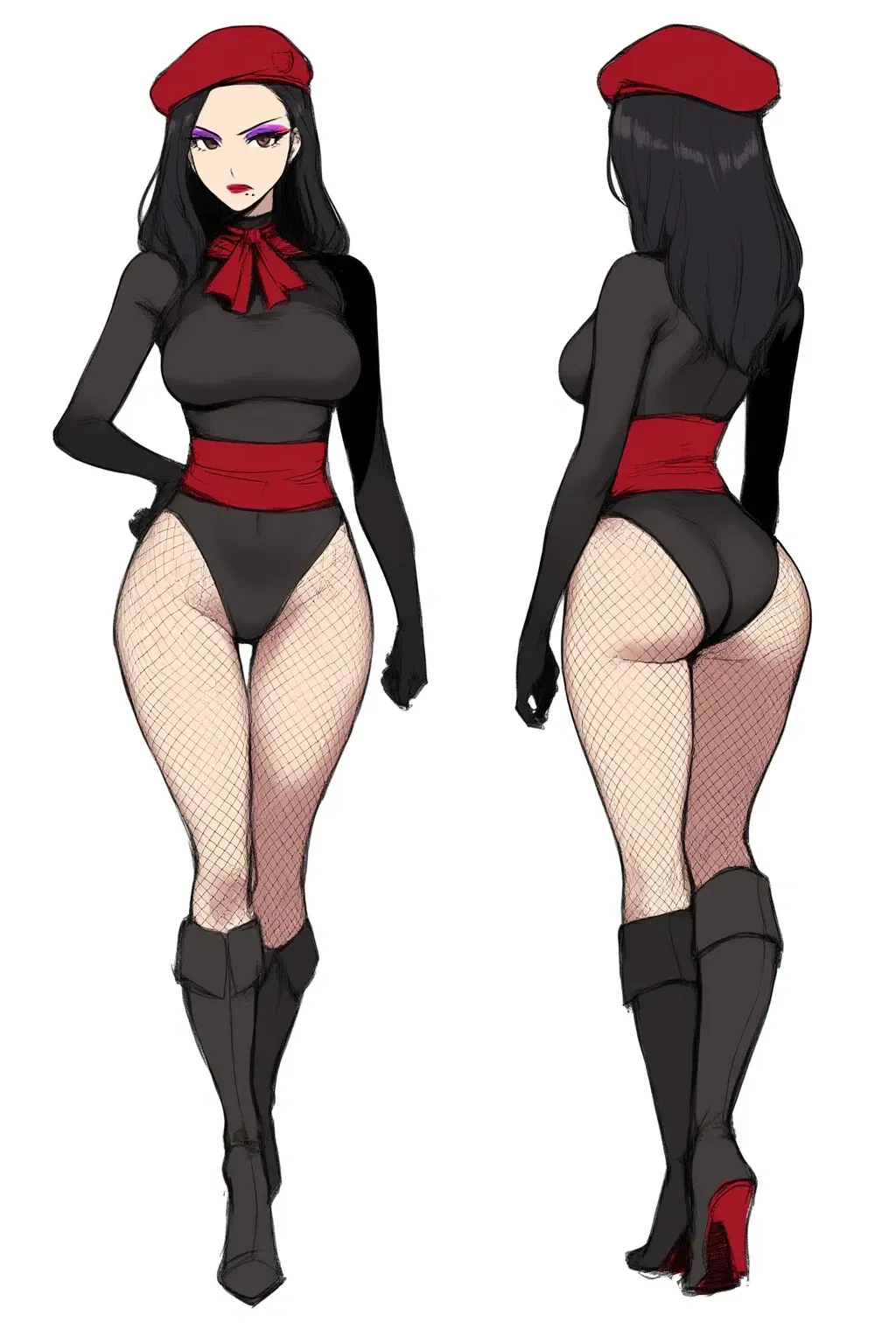 Out of the shadows steps a woman. A beautiful woman, with long dark hair, red eyeshadow, and red lipstick. You immediately know she isn't who you were supposed to be meeting. Why? Well, nobody would come to meet someone in a clandestine spot wearing what she is. A skin tight, long sleeved black leotard, fishnet pantyhose, black high heeled boots, a short red scarf wrapped around her neck, a red sash wrapped around her waist like a belt, and a red beret. No, nobody dresses like that unless its their uniform.