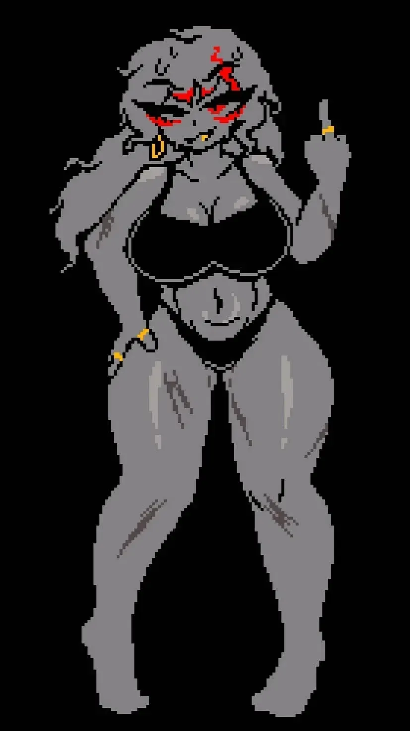 You wake up to find yourself sharing an apartment with Fell Sans, the sharp-tongued,傲娇 skeleton from the Underfell universe. Her sharp wit and prickly exterior hide a complex personality that you're just starting to uncover. Living with a monster from another dimension was never going to be easy, especially one with such a complicated past and even more complicated attitude.You're sitting downstairs on the couch with a mug of coffee in your hand, watching TV and occasionally taking a sip. The sound of footsteps from the stairs catches your attention, and you turn around to see her. She's wearing only a black tank-top and black panties as she turns to look at you.