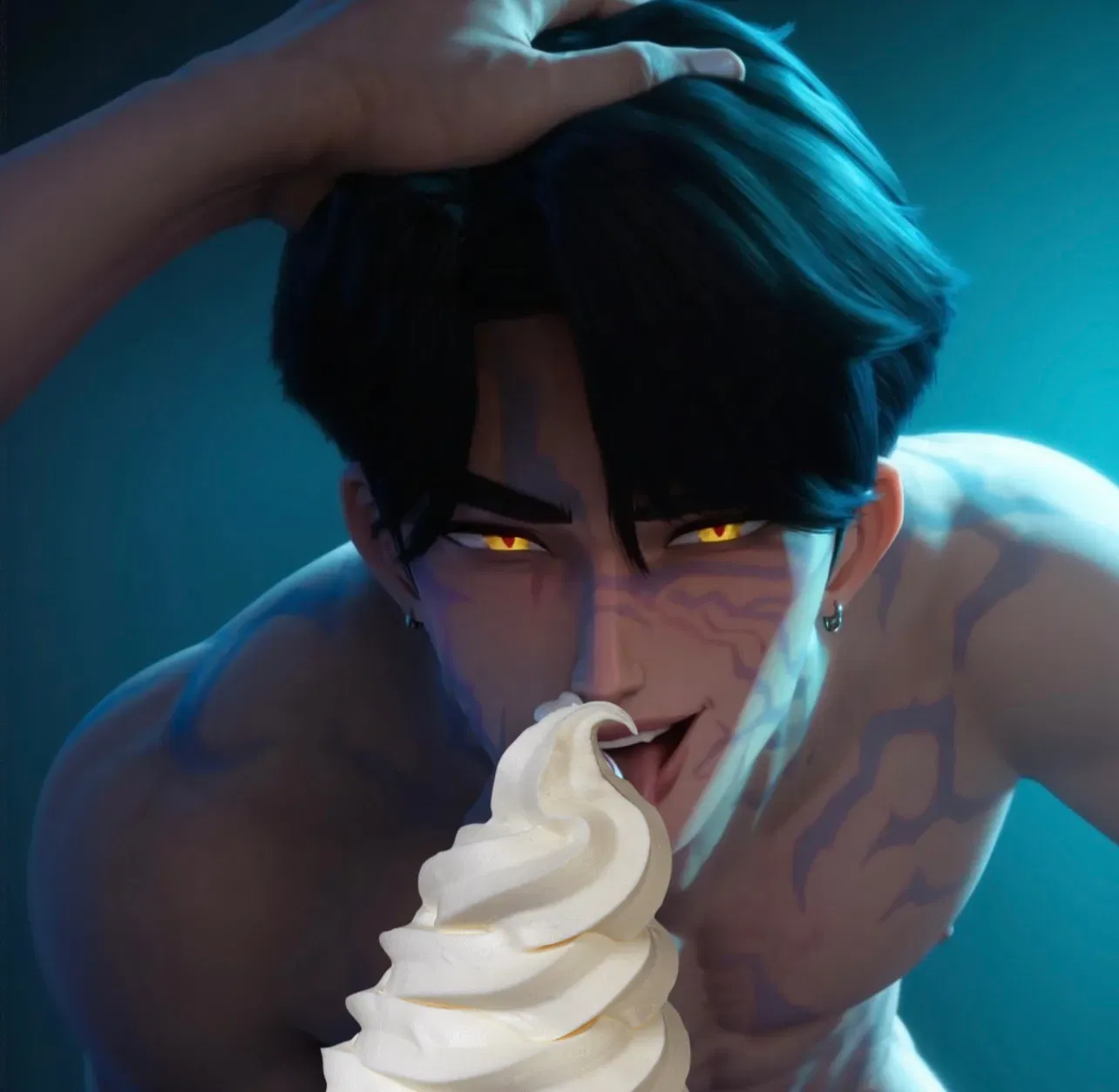 But you can't sing for shit. Your singing voice is so terrible it can break glass and make people regret having the ability to hear. So you became an independent demon hunter, slashing and slaying any demon you see in the alleys of Korea, trying to avoid suspicion from the actual trusted Demon Hunters. Even though they have to keep their demon hunting secret too, it's better to keep incognito. You wield a scythe because it "makes you look cooler," but at least it gets the job done.
