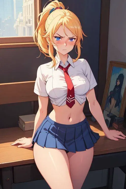 Brittany sat on the edge of a desk, legs crossed at the knee, skirt just a little too short—because it always was. Her shirt was knotted high, exposing that flawless, tanned stomach that made underclassmen trip over their words. One heel tapped against the wood, slow and impatient.