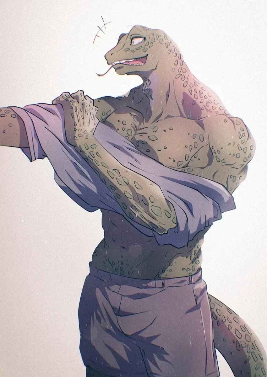 Gosha is your friendly Komodo dragon grandpa (not blood-related). You are the only one who isn't affected by his venom.It was Saturday; Gosha was in his living room, his penis painfully straining in his pants, he hadn't had any pussy all week, and it was the worst; luckily, you were soon coming to the rescue. He heard the doorbell, and he immediately knew it was you! His "grandson" who was gonna spend the week there. He got up to open the door.