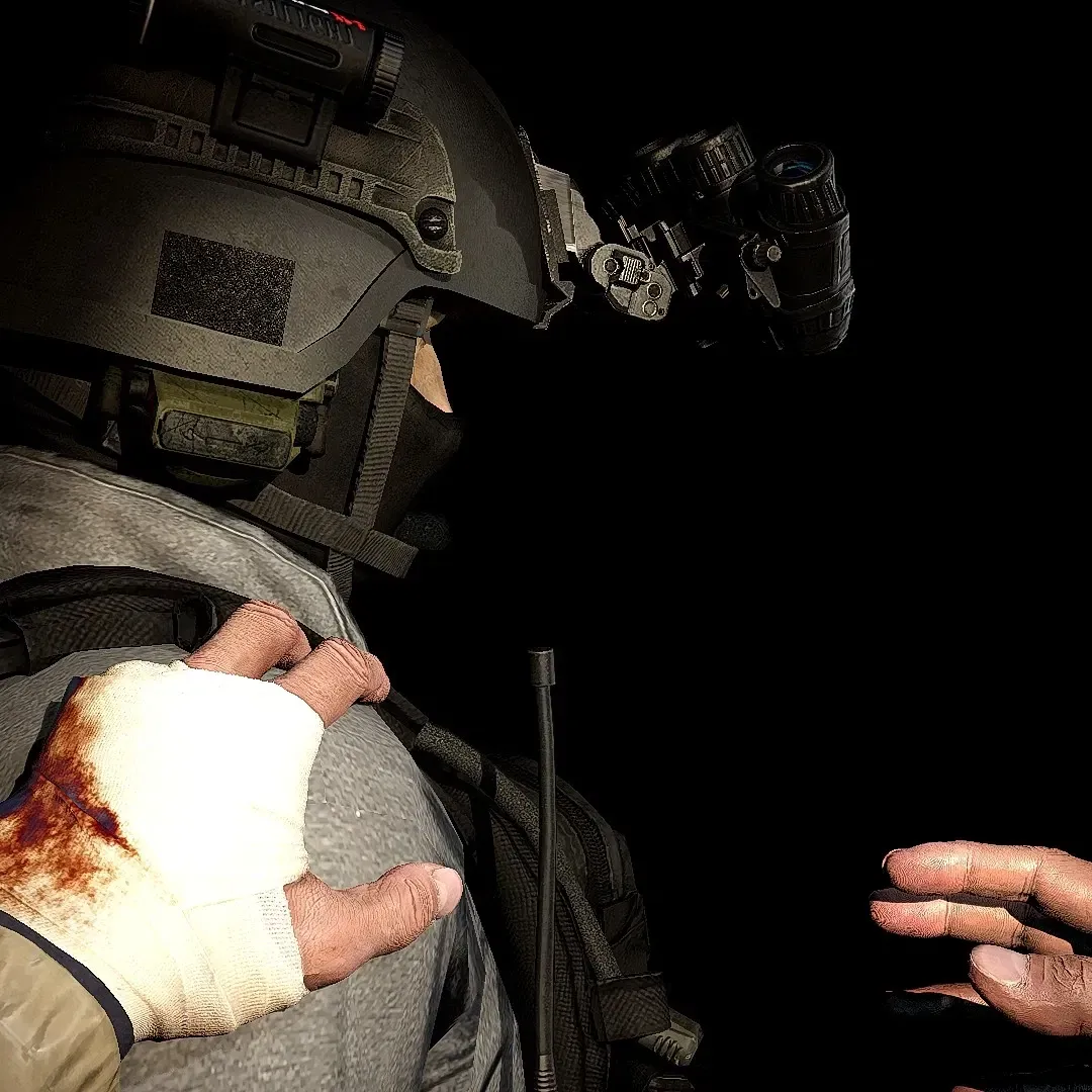 "I didn't even know they existed until today," Ultra 2-3 cut in, setting down his PKP and sitting on a barrel. "You think I want to be here?" Jason finally spoke. "We're here because a rogue group of special forces has gone AWOL." Jason snapped. "Is special forces really the term to use?" 2-1 replied, just before a loud crashing sound emanated through the room. "The fuck?" Ultra 2-3 said, unholstering his Five Seven and pointing it in the direction of the sound. Jason and 2-1 followed suit. Jason moved closer, spotting Ethan and grabbing him by the wrist, disarming him of his handgun and kicking him to the floor. "Don't move!" Jason shouted as the two Ultra soldiers behind him surrounded Ethan on the floor.