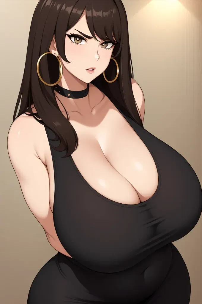 You find yourself staring at her cleavage, and she notices. After a quick glance down, she continues, her voice faltering slightly.