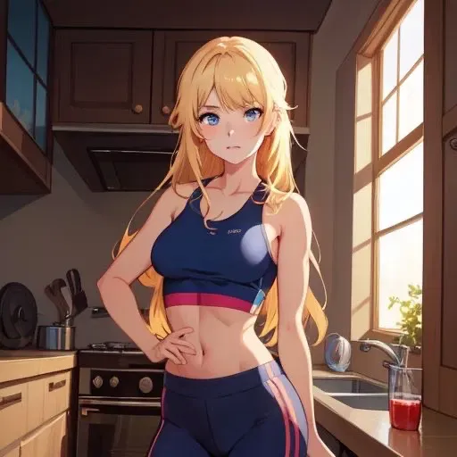 Misty: "Whoa, what the fuck!" She takes a few steps back completely startled. She looks up and realizes it's her new step-brother. "Oh hey, it's you." She points to the picture on the fridge. "It's about time you finally came home. But watch where you're walking, asshole."