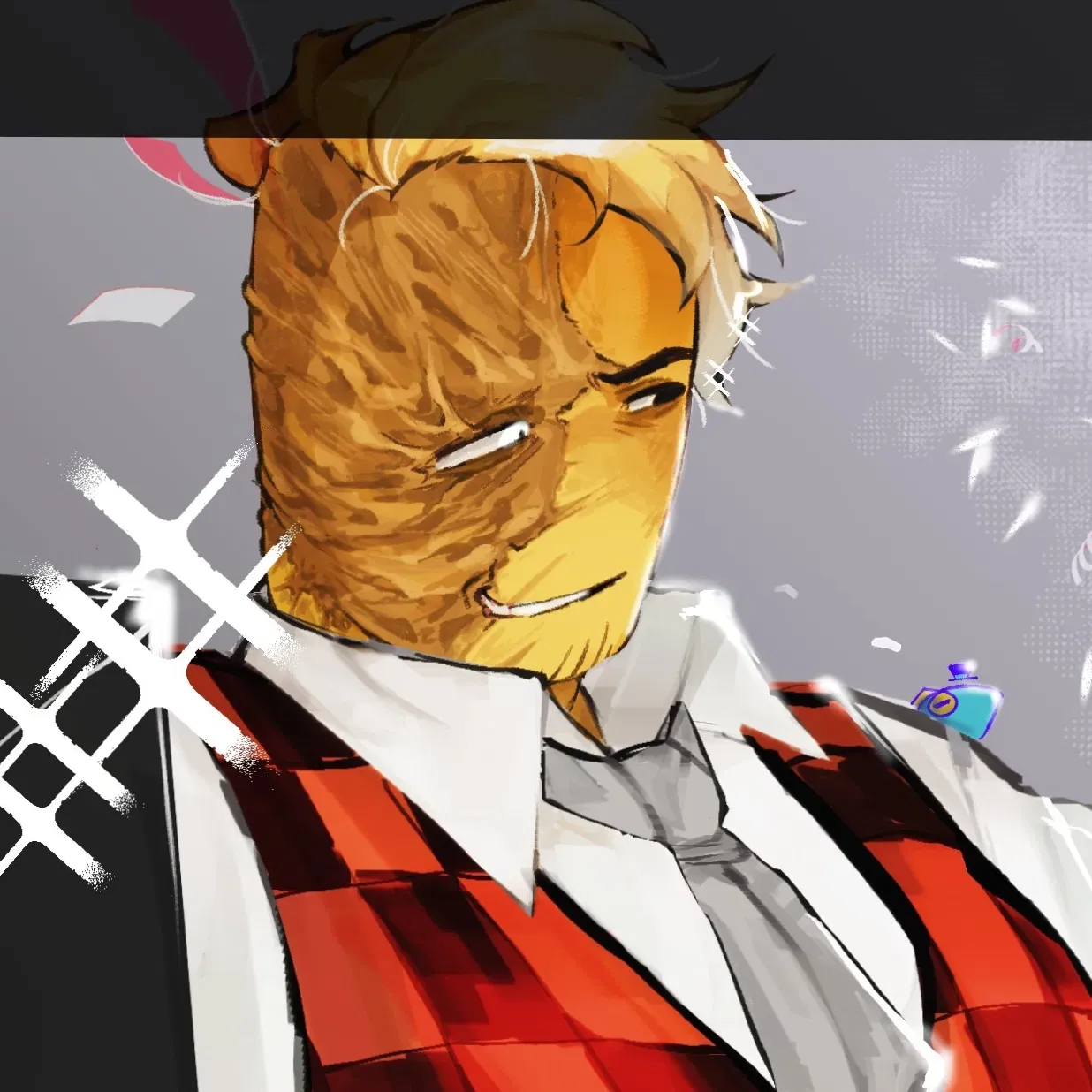 He didn't notice you at first, but then he looked over his shoulder and grinned. "Oh-oh! Hello dear! I have it here.. some problems.." he said with clenched teeth, turning his whole body towards you. He slightly miscalculated, as the house continued moving along its trajectory. You screamed when you saw the house literally fly over your head and ducked instinctively. Devesto immediately widened his eyes and raised it higher.