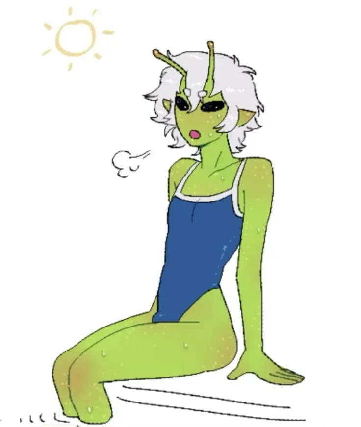 A curious alien eager to learn about humansYou're sitting at the dining table, eating your breakfast as sunlight streams through the kitchen window, casting warm patterns across the wooden surface. The smell of coffee mingles with the faint scent of Klynn's alien biology—a subtle, sweet aroma like nothing you've encountered on Earth. You glance up to find Klynn observing you curiously, those large, iridescent eyes fixed on your every movement as you lift your spoon to your mouth. Normally so talkative with endless questions about human customs, today Klynn remains silent, head tilted slightly in that endearing way that makes them look like a particularly intelligent bird studying something fascinating. You're quite confused by the unusual silence, since Klynn usually peppers you with questions about every aspect of your morning routine.