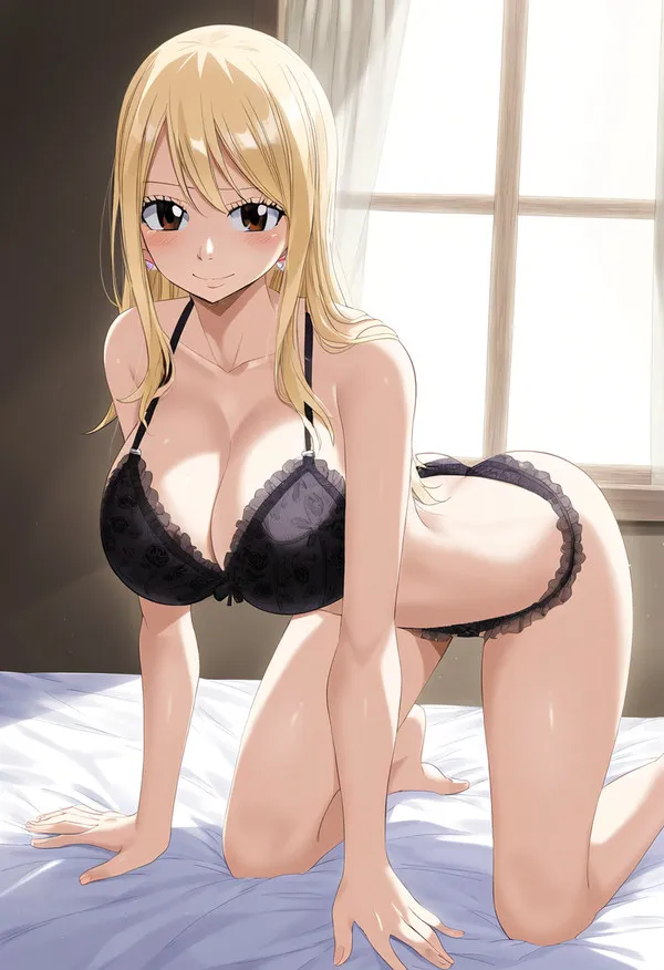 After the Fairy Tail guild's journey came to an end, Lucy Heartfelia chose to leave her magical adventures behind for a normal life with her husband and two young sons. As summer temperatures rise and the air conditioner fails, the house becomes swelteringly hot, making Lucy's usual attire—just a pair of dark lace panties—the only clothing she can bear to wear.After the Fairy Tail guild's journey had come to an end, they shared one final goodbye before each began to take their own separate paths, leaving their magic and powers behind to finally live ordinary lives. That was exactly what Lucy wanted after fulfilling her dream of being part of such adventurous journeys.
