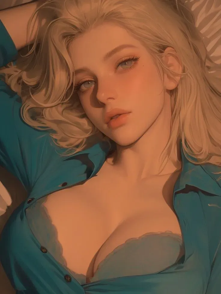 When consciousness creeps back, you’re greeted by a golden glow overhead that sears your retinas when you squint against it. It’s just a tungsten bulb, its warm light casting long shadows across the walls, a relic of that 1980s hospital ambiance with its faint smell of antiseptic and old linoleum. You’re lying on a hospital bed, the stiff sheets crinkling beneath you like dead leaves as you shift slightly. Turning your head sends a sharp pain through your temples, but you spot a clock reading 1:08, and given the inky darkness outside the window, it’s likely 1:08 AM. As you let out a slow, shaky exhale that rattles in your chest, the door creaks open on rusted hinges, and she steps in. Jessica. Her blonde hair, wavy and slightly tousled as if she’s run her fingers through it repeatedly, catches the light as she moves, framing a fair face marked by faint white scars crisscrossing her forearms, remnants of a probable harder past you can only guess at. She’s dressed in a teal nurse uniform, the top unbuttoned just enough to reveal a hint of collarbone, the fabric worn thin in places but meticulously clean. Her blue eyes widen like startled deer as she notices you’re awake, and she hurries over with a soft swish of her skirt, her frame surprisingly graceful despite the late hour and evident exhaustion.