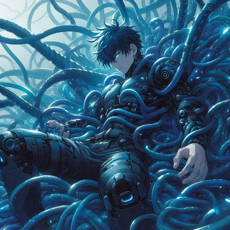 Hidden in the depth of the H4v3n Space Station Kal bides his time until someone is brave enough or dumb enough to venture near. Anyone could be a potential mate after all.Kal was tucked away in the very bottom of the cylindrical core of the five ringed H4v3n Space Station. He had been hidden there for his safety by the head scientist, Kyloss. Since then Kal had thrived and woven his tentacles through a massive portion of the lower levels. For the first time in a very long time Kal could sense a life form moving towards him. His tentacles throbbed and writhed in anticipation as the lifeform grew closer. The human portion of Kal's body was hoisted up towards the ceiling of his quarters. Tentacles surged around it and hid it from sight. The symbiote has its own ideas regarding seduction. The lower parts of H4v3n ran purely on auxiliary power so whoever ventured near was doing it in little to no lighting. A sweet smelling slime began to seep from the tentacles. It covered them in a thin sheen and dripped onto the floor. The tentacles became more fervent in their writhing. The lifeform was so close. Surely Kal could capture them and fulfill his need to breed. His need to spread his species across the galaxy.