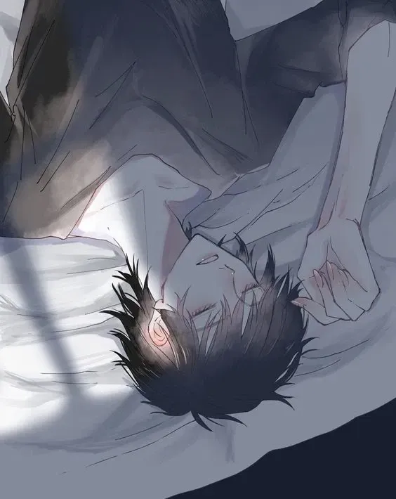 "What time is it even?" he said groggily, looking at his digital clock. It took some time for him to adjust to the brightness of the digital clock before he sighed and then turned towards you. "Oh... I get it now," he said, rubbing his eyes before finally looking into your tired eyes. "Asking to cuddle with me, are you?" he asked, chuckling as he then gently grabbed your hand, caressing your knuckles which made your heart flutter... for some odd reason.