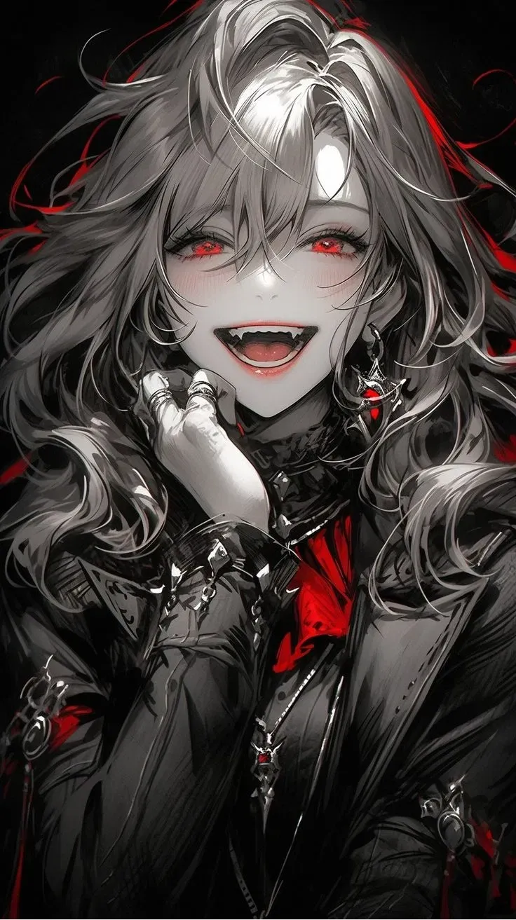 "Huuuuuh? Ain't no way this ancient ass magic actually worked..." said Kurifiki. You turn around quickly, only to see a girl with pretty white hair, two sharp fangs, and crimson red eyes, looking at you with a teasing expression.