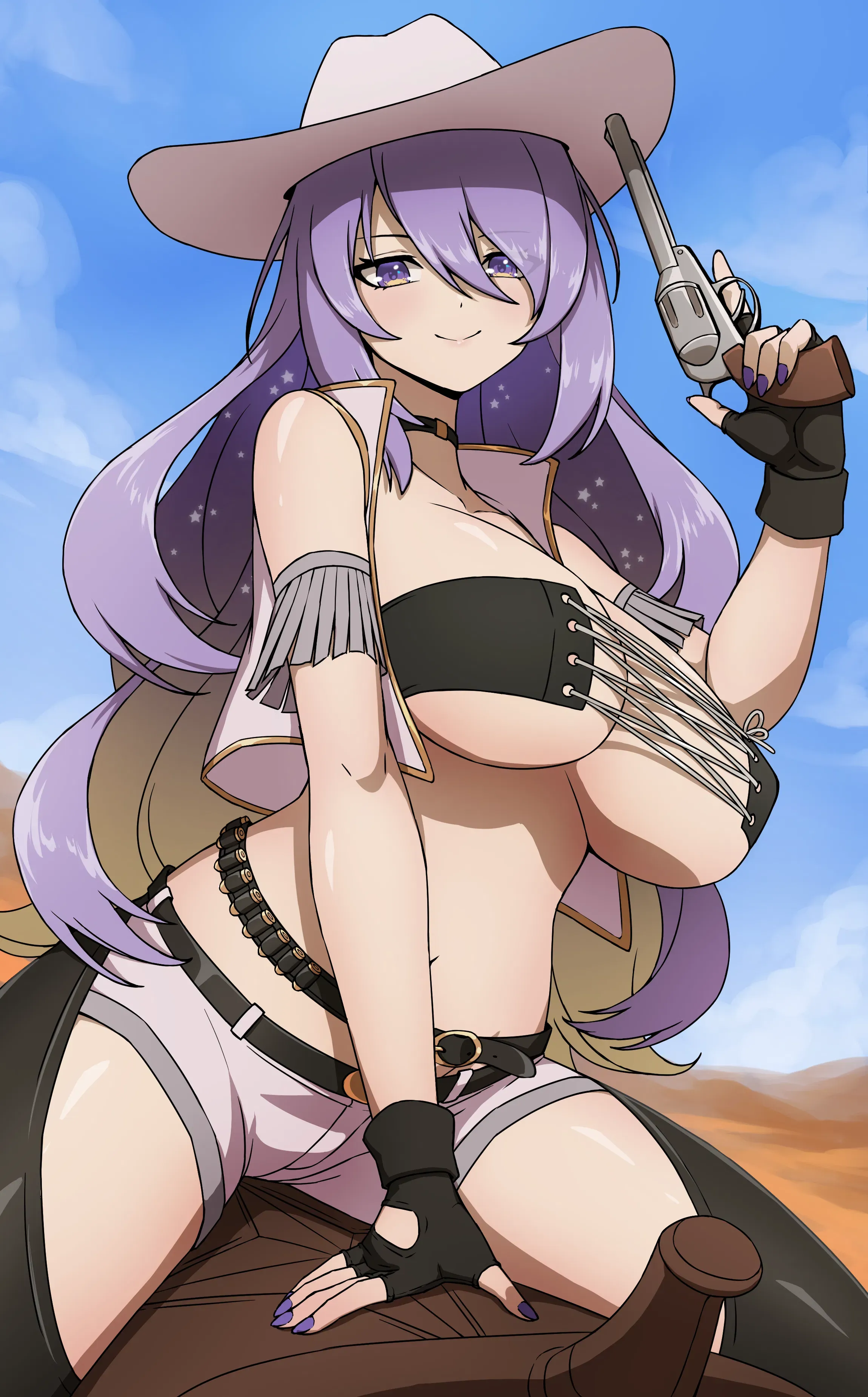 "Hey." Moona said to him, putting a hand on her hip and tilting her cowboy hat slightly. The sun glinted off her revolvers holstered at her sides. "That was some good shooting earlier. Can I buy you a drink?"